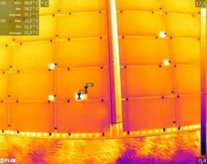El sombreado parcial reduce la irradiancia en una zona del panel. En termografía, la zona sombreada suele aparecer más fría; sin embargo, en determinadas condiciones eléctricas, el sombreado puede forzar a la célula a trabajar en polarización inversa y comportarse como un hotspot, aumentando su temperatura de forma anómala.